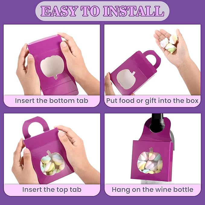 Megitzuu 30PCS Wine Bottle Box with Window, Kraft Paper Wine Boxes for Halloween Gifts Hanging Pumpkin Treat Box Mini Charcuterie Boxes Wine Bottles Gift Bags Goodies Candy Box Party Favor (Purple)