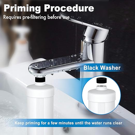 - NOTICE: The filter contains fine process dust that can give the filtered water a bitter taste. In order to remove process dust from the filter elements, it is necessary to prime each filter element several times until the water becomes clear. Please refer to the manual for specific steps and do not boil these elements.