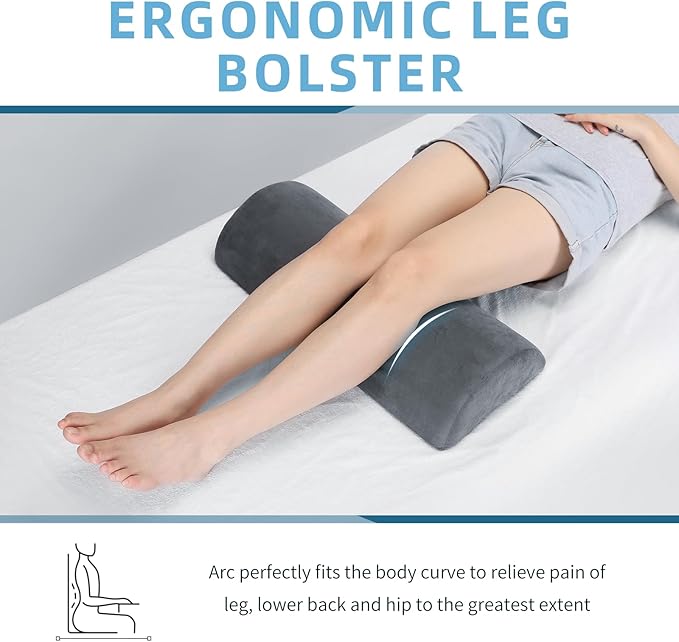 - Quality Selection: This bolster pillow for legs is a half-moon shaped memory foam leg pillow made of exceptionally strong, non-toxic memory foam, which is able to maintain its shape and support for a long time. The knee pillows for knee pain is odorless, the pillowcase is removable and machine washable, easy and convenient to clean.