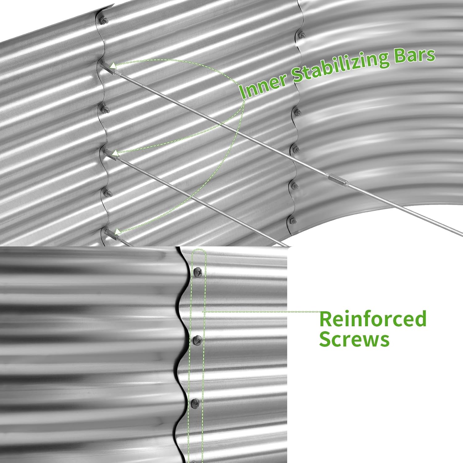 Land Guard Galvanized Raised Garden Bed, 8x4x2ft Planter Boxes Outdoor, Oval Larger Metal Planter Boxes for Vegetables, Fruits, Flowers (Silver)