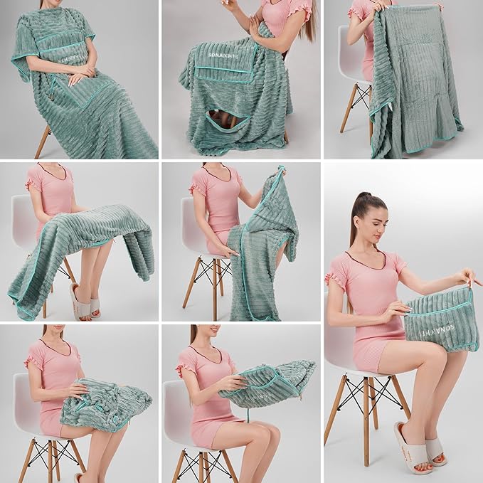 Travel Blanket Travel Blanket Airplane Compact with Bag 2 in 1 Travel Pillow and Blanket Set Travel Pillow and Blanket Car Road Trip Camping Essentials (Mint Green)
