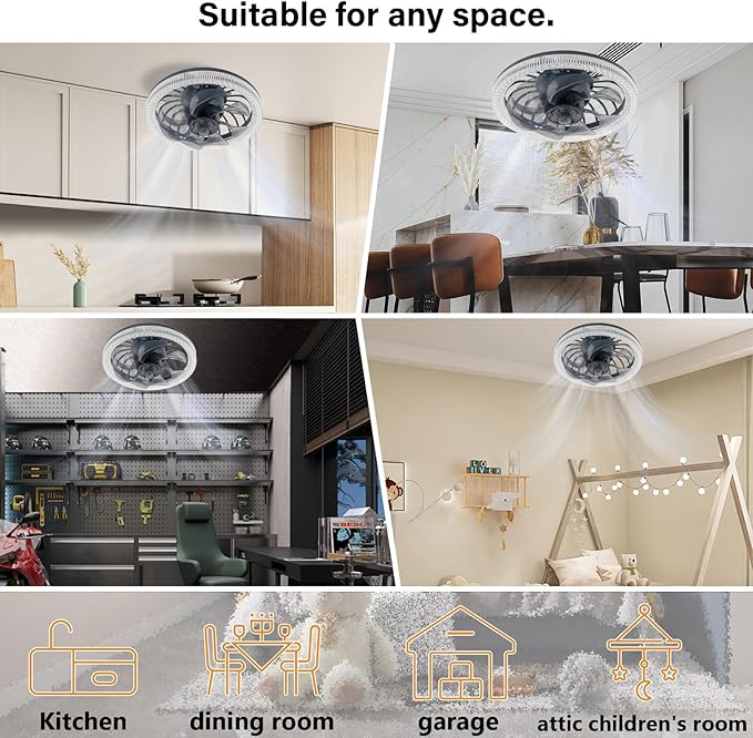 - 【3 in 1 Ceiling Fans with Lights】Our Socket fan light combines a high-quality fan and energy-efficient LED lights to illuminate and circulate air around your room without having to purchase two separate products. With its diamond shining outlook, it complements any decor and is perfect for any room in your home – dining rooms, laundry room, kitchen, garage, offices, closet, farmhouse, bedrooms, living rooms or other small rooms.