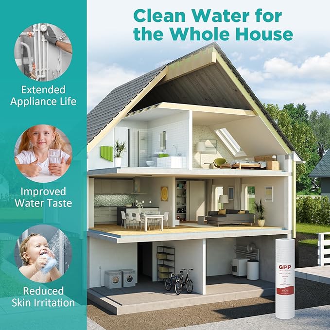 - Triple Stage Density: The 5 Micron whole house water filter is designed with a perfect balanced density featuring three PP layers to remove most sediment, dirt, rust and particles. Higher particle reduction efficiency as the pre-filters in home and commercial water purified system