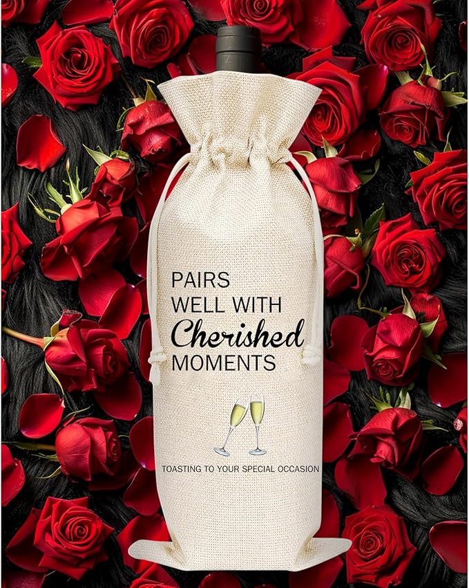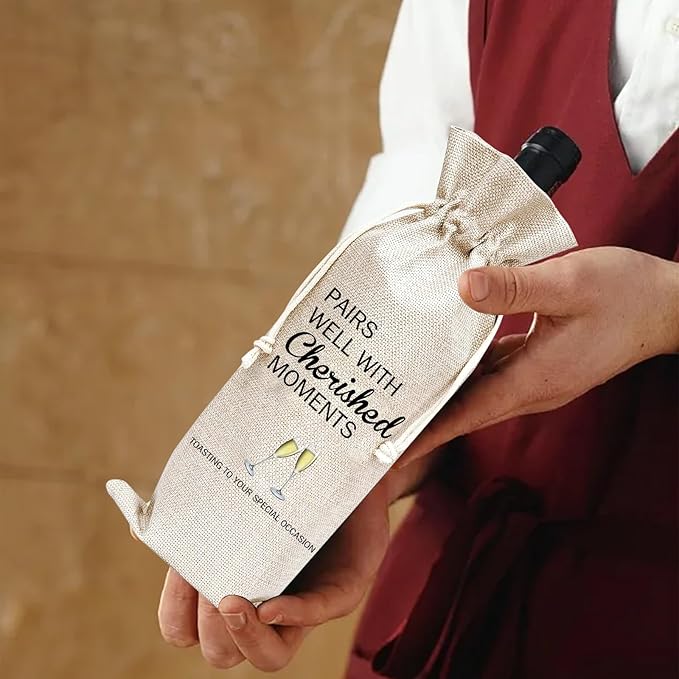 • 【Unique Design】Featuring the phrases "pairs well with cherished moments" and "Toasting to your special occasion," this wine bag is the perfect gift accessory. Fill it with a fine bottle of wine or champagne to convey your heartfelt wishes and congratulations to the happy couple.