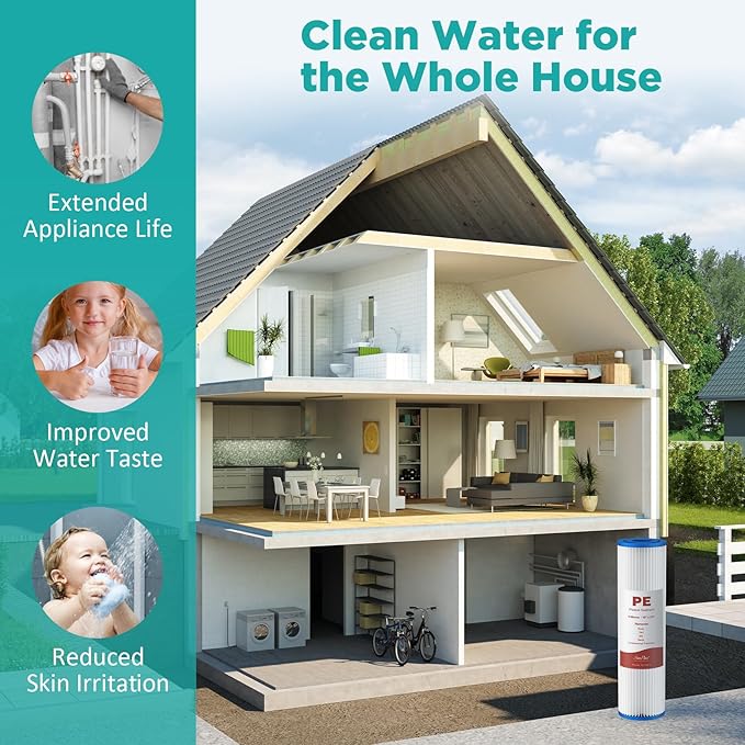 - [Protect Your Water System] - Serving as the first line of defense in your filtration system, this pleated filter helps prevent your plumbing and appliances from sediment buildup and potential clogs. While it’s not designed to remove chlorine, it significantly enhances the longevity of your water equipment and ensures consistent, high-quality water flow.