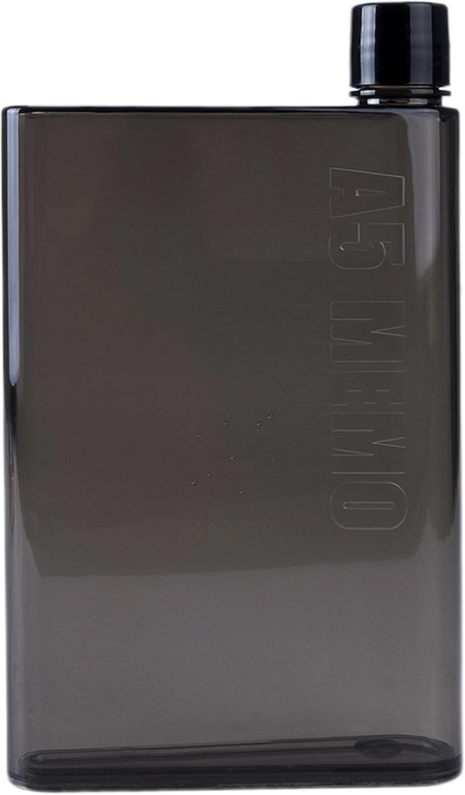 IUI Flat Water Bottle 14 oz, Leak Proof and Slim Reusable Flat Water Bottle, Portable Cute Water Bottle for Purse Pocket School Sports Travel Black