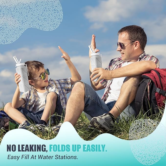 - HIGHLY PORTABLE AND COLLAPSIBLE: Our collapsible water bottles are made of food-grade silicone, with an extensively tested double leak-proof design, collapsible water bottles are great for traveling and outdoor sports, as well as daily drinking water, these collapsible silicone water bottles a thoughtful companion to your travels. Lightweight and portable, you can enjoy a smooth drinking experience anytime and anywhere.
