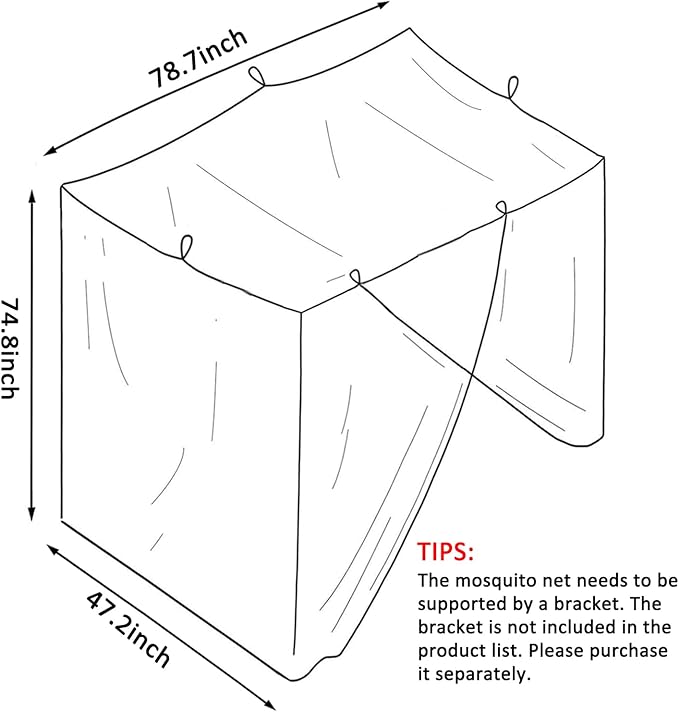 - The Size -78"(L)x 47"(W) x 71"(H)/200 x 120 x 180 cm, Twins Size. Package Including: White Mosquito Net
