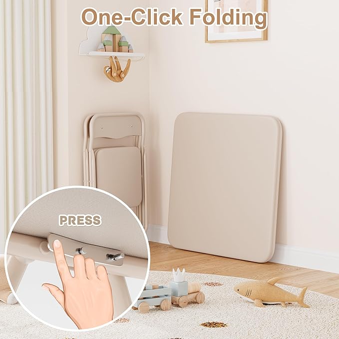 - Activity Space: Unfold limitless possibilities for creativity with our foldable table and chair set. Whether it's for arts and crafts, homework, or snack time, this foldable table and chair set provides a convenient and portable solution for providing a designated space, allowing your boys and girls to explore, learn, and create wherever they go.
