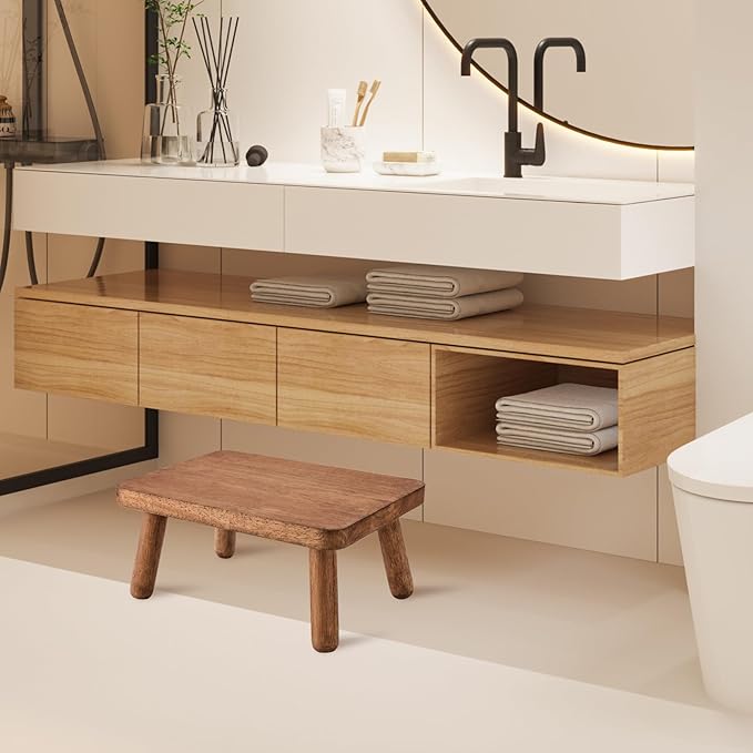 - 【SOLID WOOD】– The wooden step stool's top and legs are produced from natural solid wood. Real wood small step stool is durable and long-lasting.