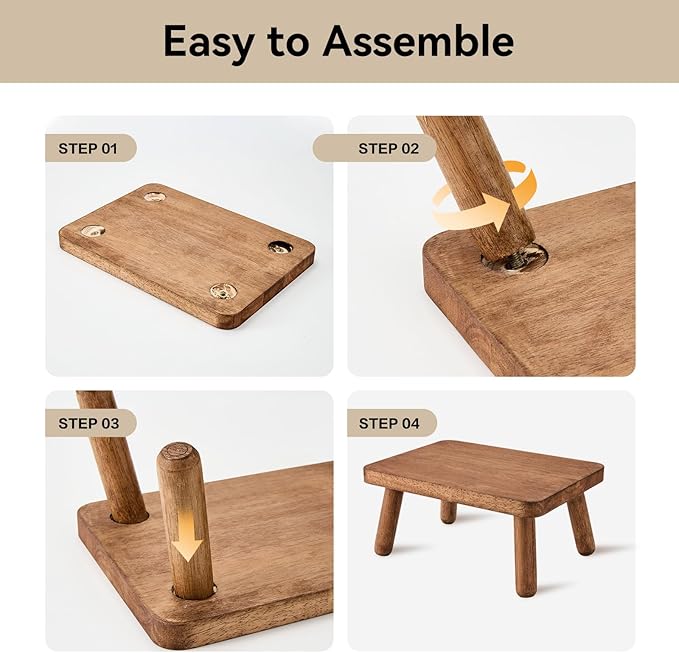 - 【EASY TO ASSEMBLE】–The one step stool is easy to assemble. No tool is needed. You can screw 4 legs into the top's threaded holes in 2-3 minutes.