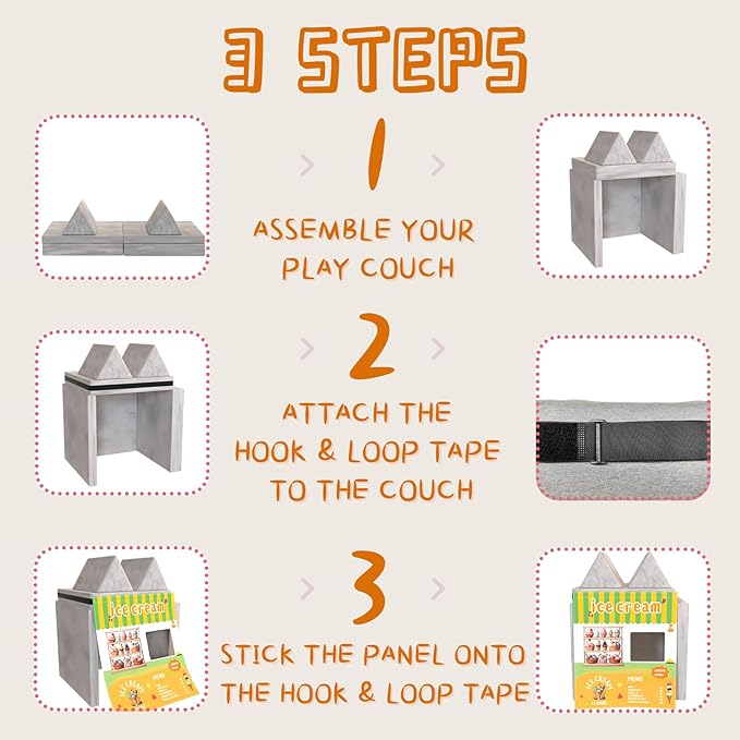 Play Panel for Kids Play Couch Foam Sofa Childrens Home Play Modular Couch (Sofa not Included) - Ice Cream Store