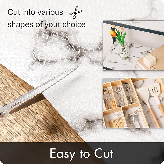 • 【Easy Installation】: Easily cut the Cabinet Liner to any size and shape you need;Perfect for use in cabinets, drawers, refrigerators or on wire shelves;Our Shelf Liners for Kitchen Cabinets are thick, strong, and reusable, meeting all your household needs