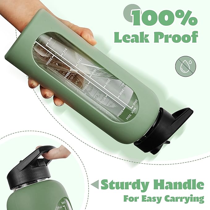 - Glass Water Bottle with Silicone Sleeve:Sierozur big water bottle for easy to carry and use. It has designed the silicone sleeve for the glass water bottle. the color of the silicone sleeve varies and stylish,provides impact protection, easy grip, no slips and reduced condensation. Enjoy the happy hour of drinking water.