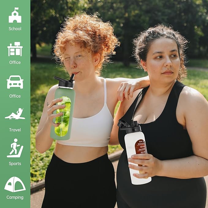 - Spout Lid & Straw Lid:SIEROZUR motivational water bottle is equipped with 2 leakproof and durability wide-mouth lids, Spout lid allows for fast water flow suitable for hot drinks. Straw lid suitable for iced beverages. You can choose more suitable lid to match bottle according to their drinking habits and usage scenarios