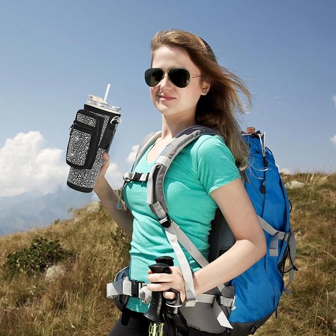 - 2-in-1 Storage Bag Design : This stanley 30oz 40oz water bottle cover has two front pockets. Provide sufficient space for your personal belongings, such as phones, cash, cards, keys, etc