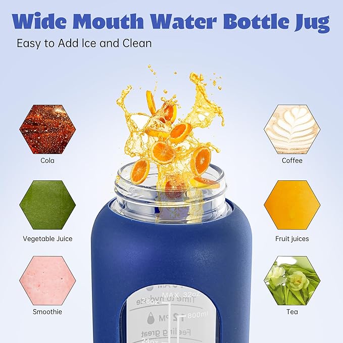 - Glass Water Bottle with Silicone Sleeve:Sierozur big water bottle for easy to carry and use. It has designed the silicone sleeve for the glass water bottle. the color of the silicone sleeve varies and stylish,provides impact protection, easy grip, no slips and reduced condensation. Enjoy the happy hour of drinking water