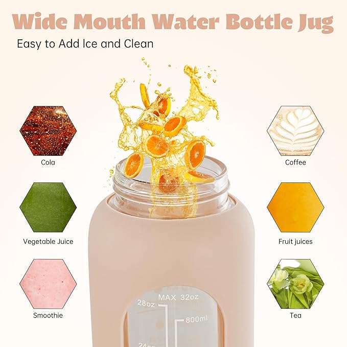 - Glass Water Bottle with Silicone Sleeve:Sierozur big water bottle for easy to carry and use. It has designed the silicone sleeve for the glass water bottle. the color of the silicone sleeve varies and stylish,provides impact protection, easy grip, no slips and reduced condensation. Enjoy the happy hour of drinking water