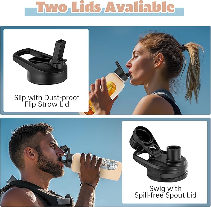 - Spout Lid & Straw Lid:SIEROZUR motivational water bottle is equipped with 2 leakproof and durability wide-mouth lids, Spout lid allows for fast water flow suitable for hot drinks. Straw lid suitable for iced beverages. You can choose more suitable lid to match bottle according to their drinking habits and usage scenarios