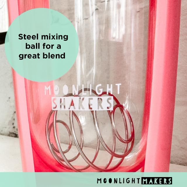 Moonlight Makers Cute 16oz Protein Shaker Bottle with Steel Whisk Ball, Leakproof Gym Bottle, Shaker Cups for Protein Shakes, Dishwasher Safe, Fitness Gifts, Preworkout Drink Mixer