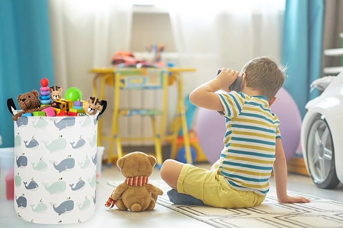 Kids Laundry Hamper,Whale Laundry Basket Collapsible Girls Storage Baskets for Home Decor,Office,Toy Organizer,(Whale)