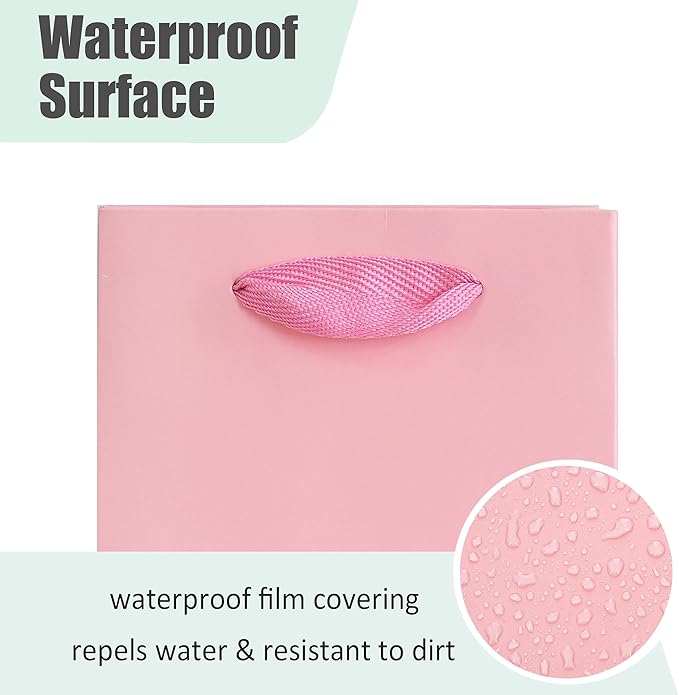 KEYYOOMY Wine Gift Bags - 10 Pack Pink Kraft Paper Wine Bottle Gift Bags with Handles for Wedding Birthday Housewarming Christmas Party Supplies(10CT, 13.8x4.3x3.5 IN, Pink)