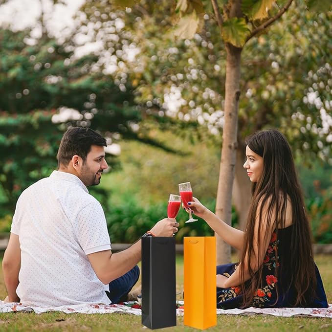 • 【Reusable and Recycled】Made of sturdy cardboard with a waterproof film on the surface, making the wine gift bag more durable and reusable for many times. Reduce waste and make a sustainable choice.