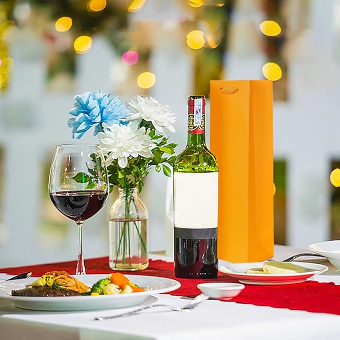 KEYYOOMY Wine Gift Bags - 10 Pack Orange Kraft Paper Wine Bottle Gift Bags with Handles for Wedding Birthday Housewarming Christmas Party Supplies(10CT, 13.8x4.3x3.5 IN, Orange)