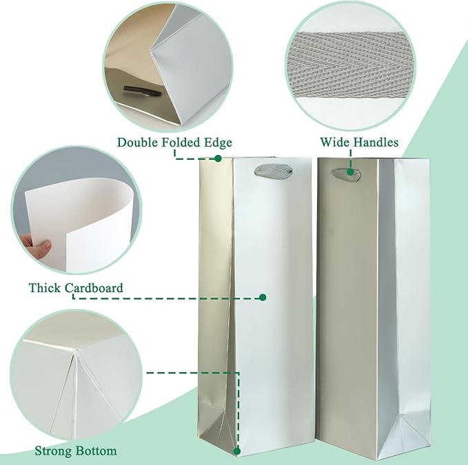 - 【Premium Quality】Wine gift bags with handles are made of thickened cardstock for a premium feel and durability. The widened handle ensures strong weight-bearing capacity, supporting up to 11 pounds (5 kilograms).