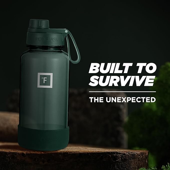 IRON °FLASK Clear Tritan Trekker Water Bottle with Chug Lid & Rubber Boot - Leak Proof & Lightweight for Gym, Hiking, Sports - Dishwasher Safe, BPA Free Plastic - Dark Pine, 32 Oz