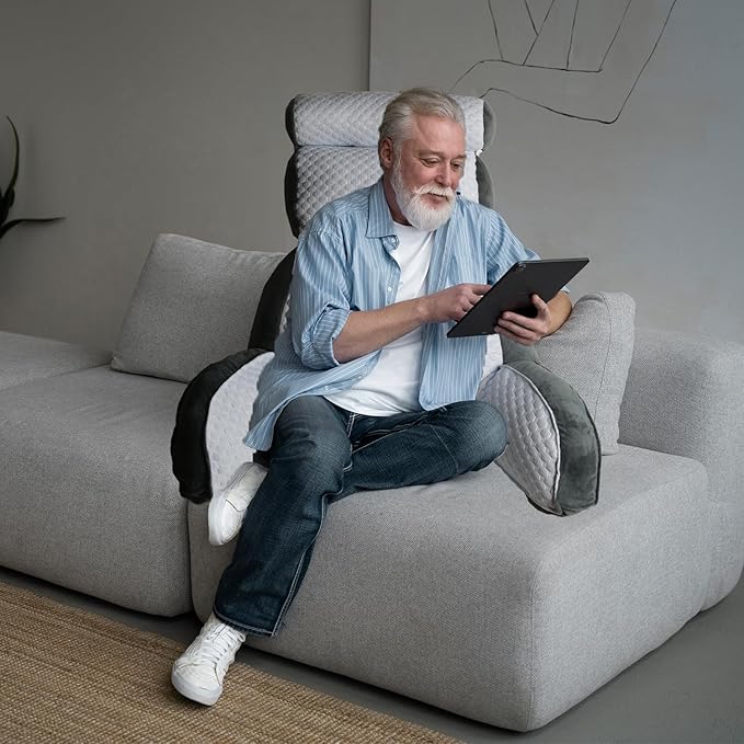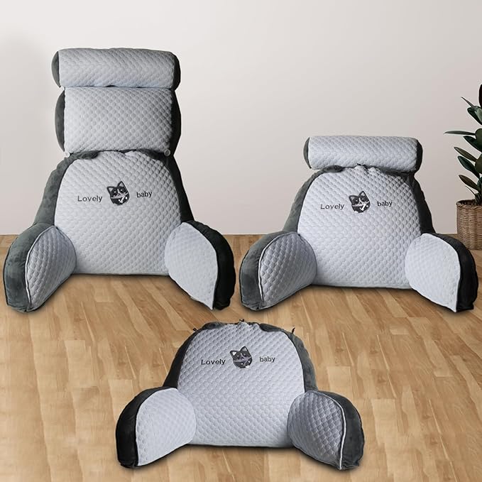 Reading Pillow for Shoulder & Head Support, Back Pillow for Sitting in Bed, Back Support Pillow W/Durable Zippers, Spine-Friendly Curve Design - Cozy, Breathable & Adjustable Sit Up Pillow(Big)