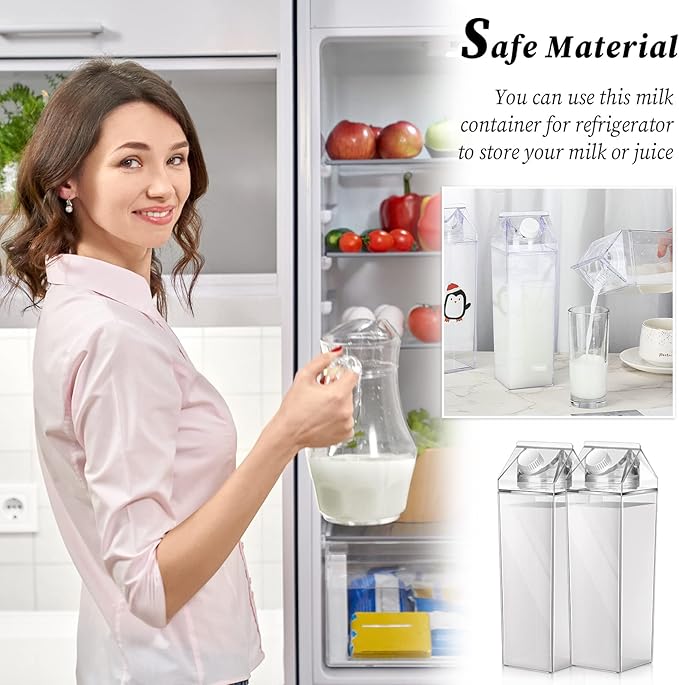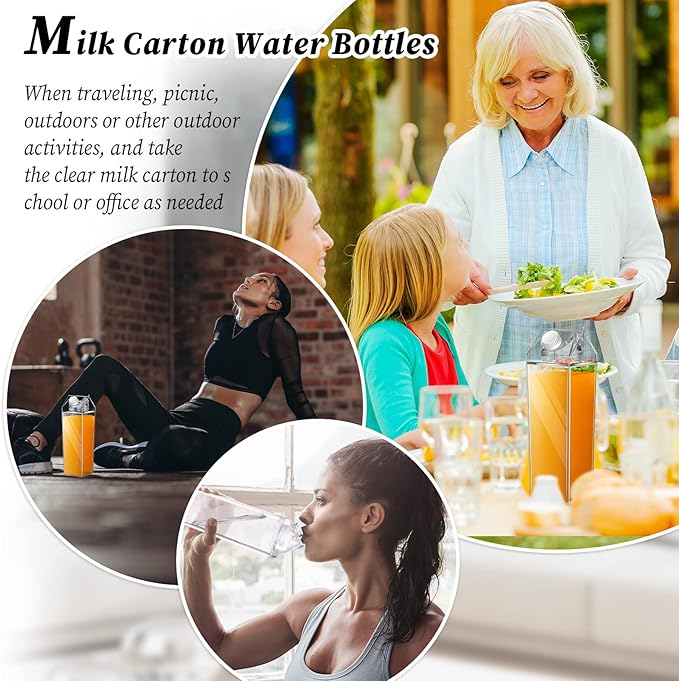 - Widely Use: this milk carton water bottle is suitable for storing any beverage including water, coffee, milk tea, milk and juice, or any other beverage below giving you a relaxed and pleasant mood; Especially when you take part in You can use this milk container for refrigerator to store your milk or juice when traveling, picnic, outdoors or other outdoor activities; You can also take the clear milk carton to office as needed