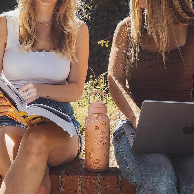 BOTTLE BOTTLE 32oz Insulated Water Bottle Stainless Steel Sport Water Bottle with Straw Dual-use Lid Design for Gym with Pill Box (yellow flower)
