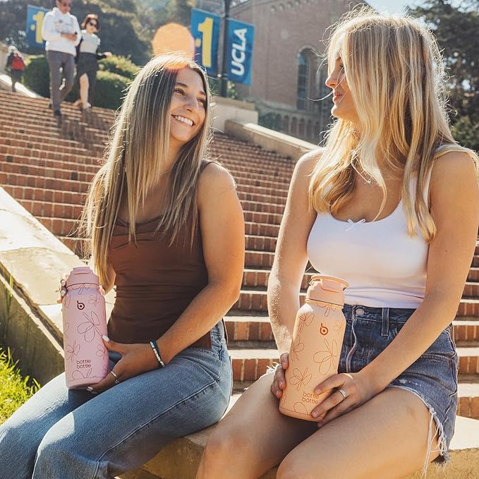 BOTTLE BOTTLE 32oz Insulated Water Bottle Stainless Steel Sport Water Bottle with Straw Dual-use Lid Design for Gym with Pill Box (pink flower)