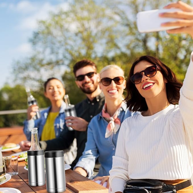 16oz Stainless Steel Double Wall Insulated Can Cooler, Beer Bottle Holder, Bottle or Tumbler for Slim Beer & Hard Seltzer CansS(Silver)
