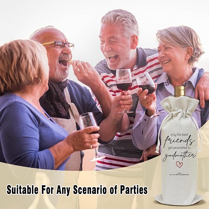 Wine Canvas Bag, Godmother Gifts Wine Gift Bag, Godmother Proposal Gifts for Women Sister Bestie Auntie Wine Bags for Wine Bottles, Wine Champagne Gifts With Drawstring Baptism Party Decoration -WB08