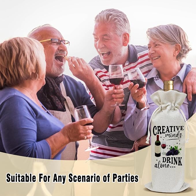 Wine Canvas Bag, Funny Wine Gift Bag, Birthday Gifts for Women Men Mom Coworker Friends Wife Wine Lover Gifts Wine Bags for Wine Bottles, Wine Gifts With Drawstring Holiday Party Decoration -WB23