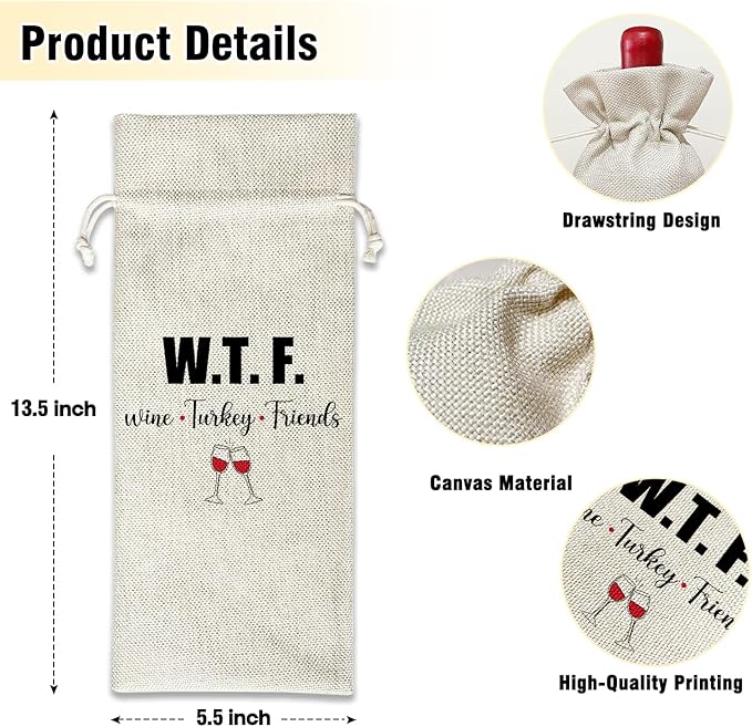 Wine Canvas Bag, Friendsgiving Wine Gift Bag, Thanksgiving Gifts for Women Friend Sister Autumn Harvest Party Wine Bags for Wine Bottles, Wine Gifts With Drawstring Holiday Fall Party Decoration -WB36
