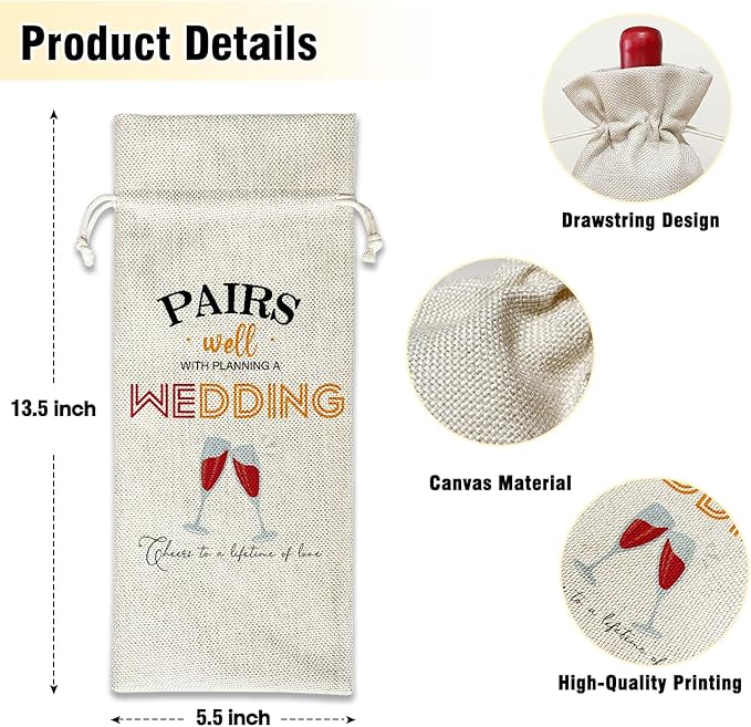 Wine Canvas Bag, Wedding Wine Gift Bag, Wedding Gift for Bestie Bride Groom Couples Wine Bags for Wine Bottles Gifts, Wine Gifts With Drawstring Wedding Engagement Bridal Shower Party Decoration -WB14