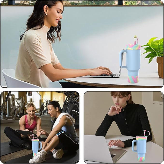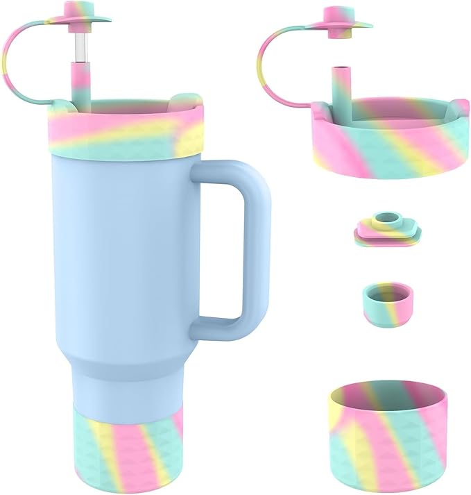 Protective Silicone Bottle Cover Set for Stanley Quencher H2.0 40 30 20 oz Tumbler with Handle & Iceflow, Anti-Scratch Cover Boot for Stanley Cup Accessories BPA Free (A)