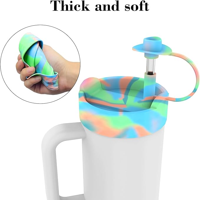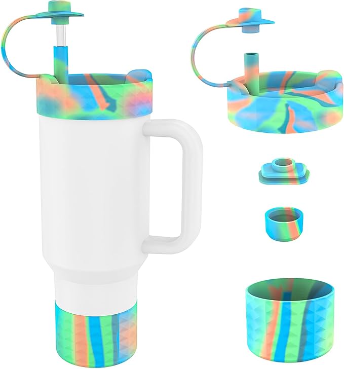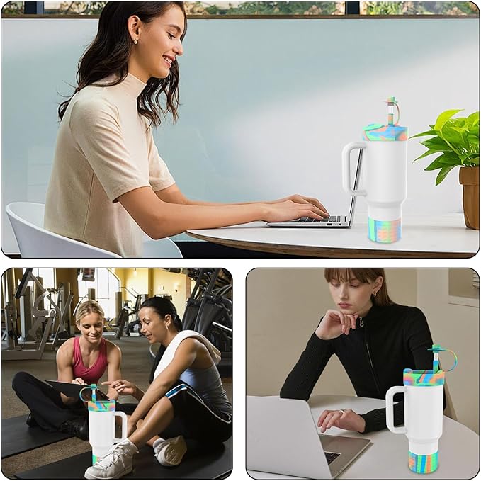 Protective Silicone Bottle Cover Set for Stanley Quencher H2.0 40 30 20 oz Tumbler with Handle & Iceflow, Anti-Scratch Cover Boot for Stanley Cup Accessories BPA Free (D)