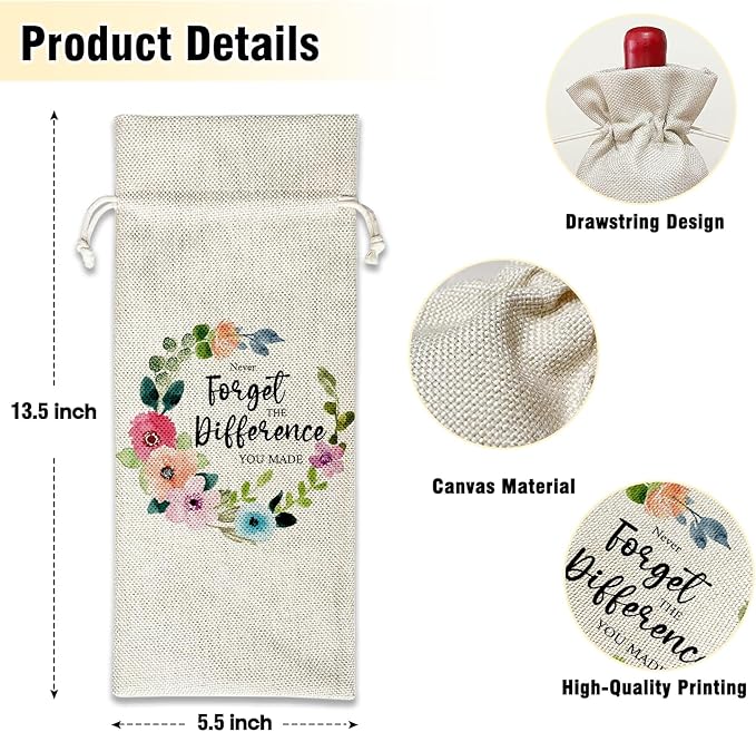 Wine Canvas Bag, Retirement Wine Gift Bag, Retirement Gift for Women Coworker Colleague Farewell Gifts Leaving Gifts Wine Bags for Wine Bottles, Wine Gifts With Drawstring Party Decoration -WB30