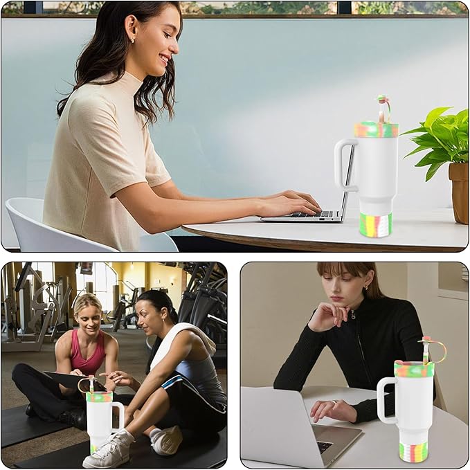Protective Silicone Bottle Cover Set for Stanley Quencher H2.0 40 30 20 oz Tumbler with Handle & Iceflow, Anti-Scratch Cover Boot for Stanley Cup Accessories BPA Free (B)