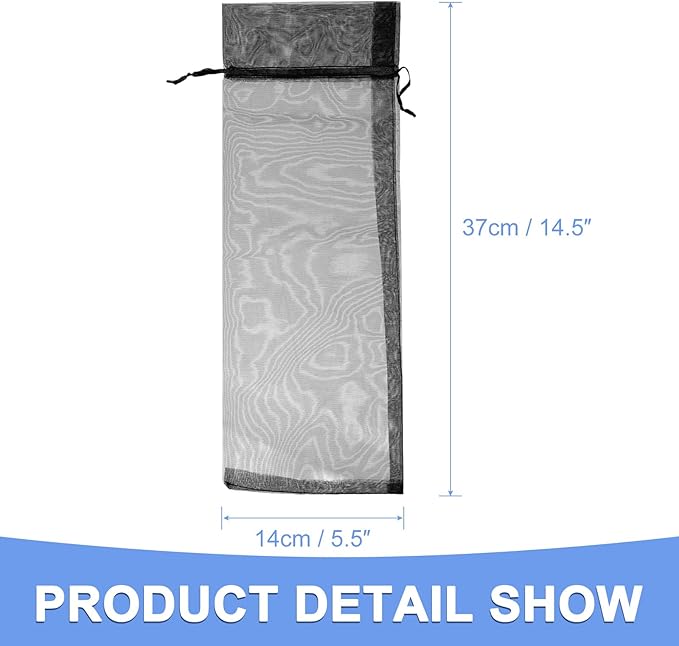 - ●(Organza Wine Bags Size) - Length: 37-cm/14.5-inch, Width: 14-cm/5.5-inch, fit most standard 750ml wine bottles.