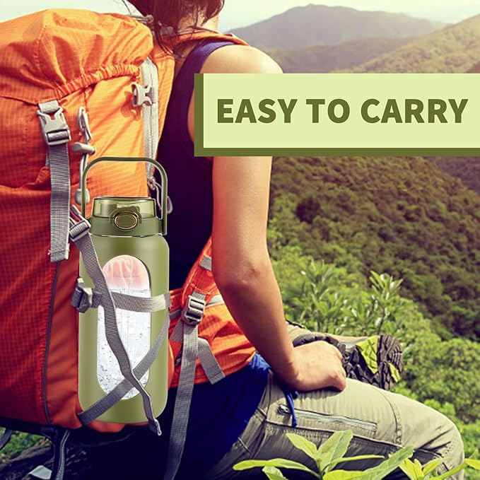- Durable: The silicone sleeve covers most of the half gallon water bottle, providing protection. It keeps your drinks cold for hours and makes this motivated glass water bottle more durable. The wide mouth of this half gallon glass water bottle makes it easy to refill with large ice cubes and fruit. Additionally, the handle also doubles as a phone stand for added convenience. The time and oz markers help you track your daily water intake and drink more water throughout the day.