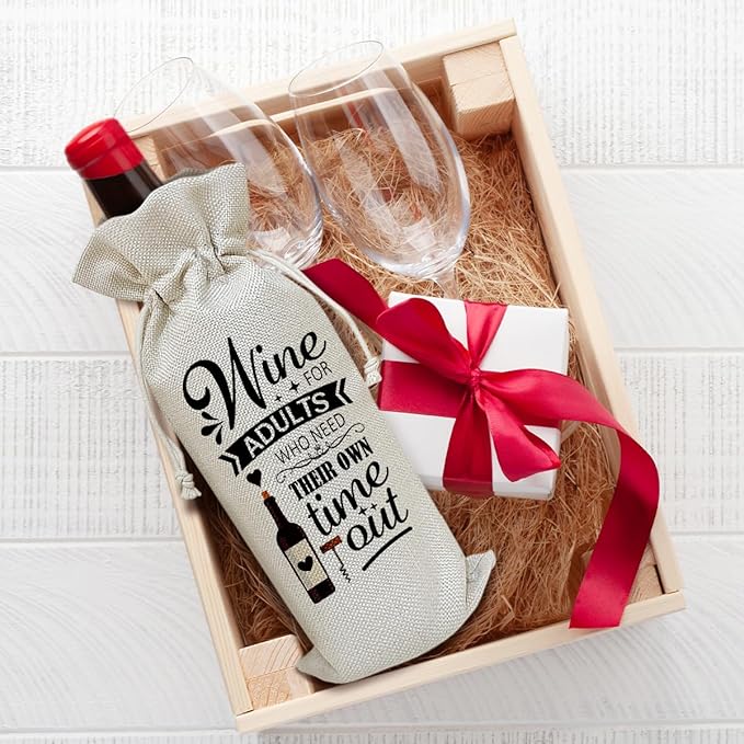 Funny Wine Bag, Funny Gifts Birthday Gifts for Women Men Coworkers Friends Sister Boss, Party Favor Wine Champagne Gift Bag With Drawstring -18
