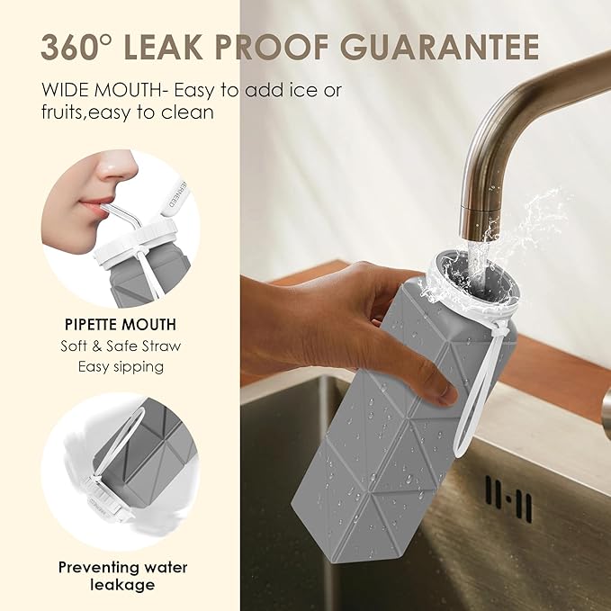 - Leak-Proof: INNERNEED Reusable Silicone Water Bottle with Straw features a leak-proof construction with a tight-fitting cap and bottle to prevent spills and leaks. In addition, the straw prevents leakage and wetting during drinking.