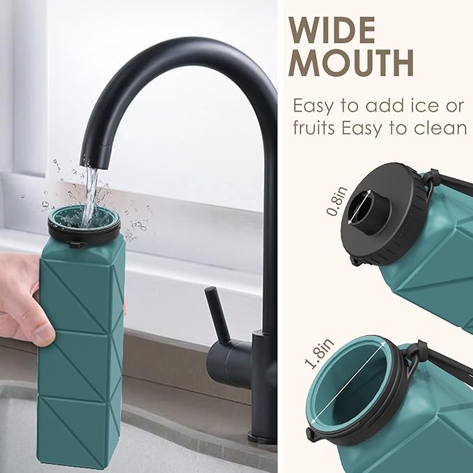 - Large Capacity: The 20.6 fl. oz (610ml) capacity is the ideal companion for traveling, camping, hiking, gym, cycling, sports, school, and so on. The silicone is thick enough to support it unfolding into a rectangular shape, easy to place without falling over, and comfortable to hold in your hand.