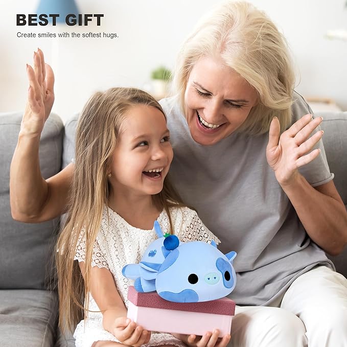 - Material: Plush Blueberry Cow is filled with elastic cotton which is softer than ordinary, skin-friendly fabrics give you better skin touch feeling, make the pillow way soft and comfortable.