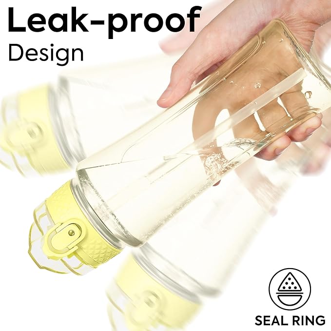 OLDLEY Kids Water Bottle with Straw 15 oz BPA-Free Leak-Proof Motivational Water Bottles with Time Marker for School Sports Travel Gym, Easy to Use for Girls Goys, 1 Straw Lid, Transparent-yellow